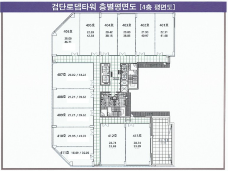 - 8층, 9층, 10층 : 피아노학원, 미술학원, 태권도학원, 무용학원, 입시종합학원, 어학원, 스크린골프, 스크린야구장, 휘트니스, 필라테스, 요가, 당구 등