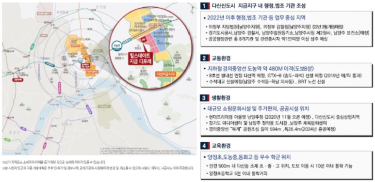 다산신도시 지금지구의 행정/법조기관이 조성되는 업무지역 및 지역 최대 상업지역